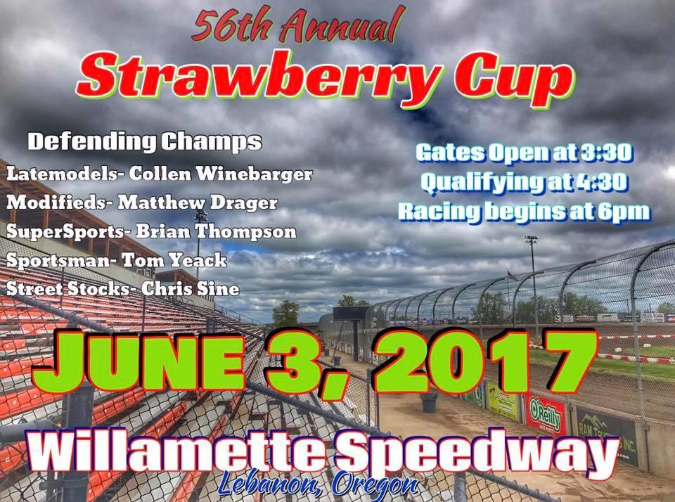 Lebanon, Oregon- Willamette Speedway is back in action on Saturday, June 3rd for one of the most prestigious races in the Pacific Northwest, the Strawberry Cup presented by NAPA Auto Parts. This race may not be the biggest paying event but it has became Willamette’s iconic event and has a decades long legacy (a incomplete list of former winners is below this story). Classes in action include the Super Late Models, IMCA Modifieds, Super Sports, Sportsman, and Street Stocks.